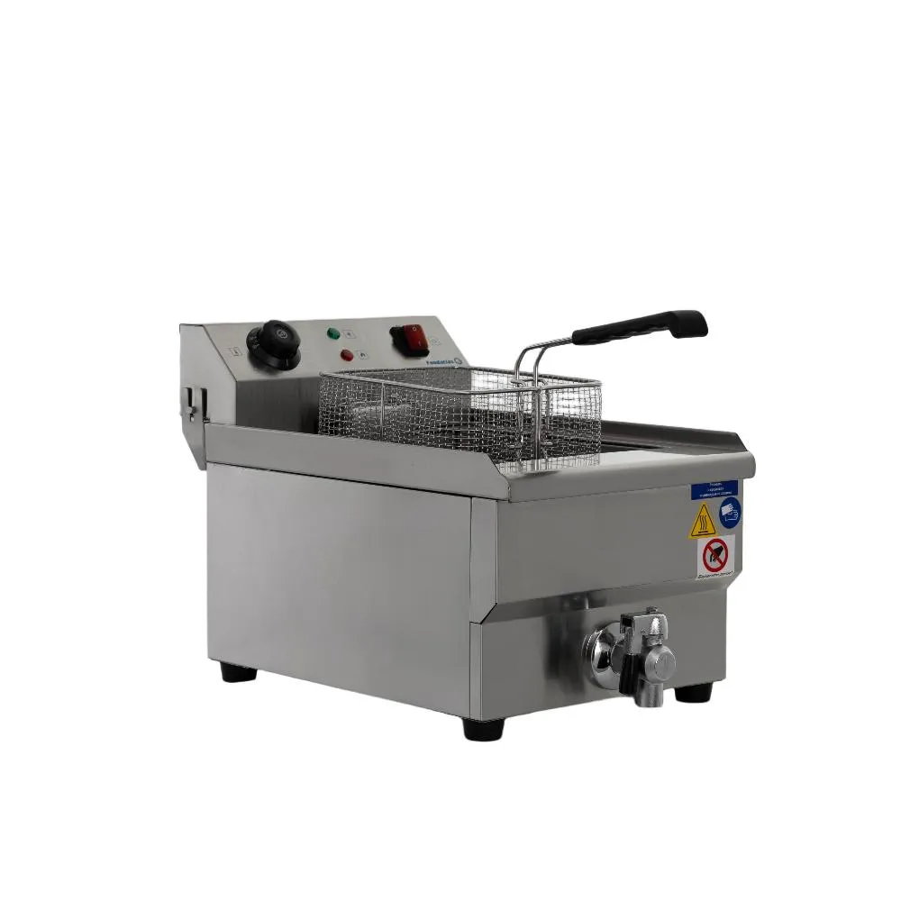 – это профессиональное оборудование для жарки во фритюре, идеально подходящее для кафе, ресторанов, фаст-фудов и столовых. Объем чаши 13 литров позволяет одновременно готовить большие порции, обеспечивая высокую производительность.Ключевые преимущества: